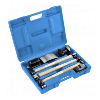 Это профессиональный набор для кузовной рихтовки, состоящий из специально подобранных молотков и наковален. Он обеспечивает точность деформации, удобство и долговечность при работе с листовым металлом. Надёжное решение для специалистов и автолюбителей.