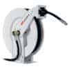 Одноопорная открытая катушка со шлангом 15 м предназначена для подачи масел и рабочих жидкостей. Конструкция из алюминия и композитных материалов обеспечивает лёгкость и прочность одновременно. Основа и опора покрыты порошковым эпоксидным слоем, что защищает от коррозии. Барабан изготовлен из композита, а крепёжные элементы — из нержавеющей стали. Вал никелирован для повышения стойкости к износу и коррозии, что делает катушку совместимой с широким спектром жидкостей. Катушка смонтирована на двух неподвижных шарикоподшипниках, что облегчает разматывание шланга и улучшает работу пружинного механизма. Механизм выпуска шланга оснащён шестью роликами, что повышает ресурс шланга, предотвращает защемление и уменьшает трение.