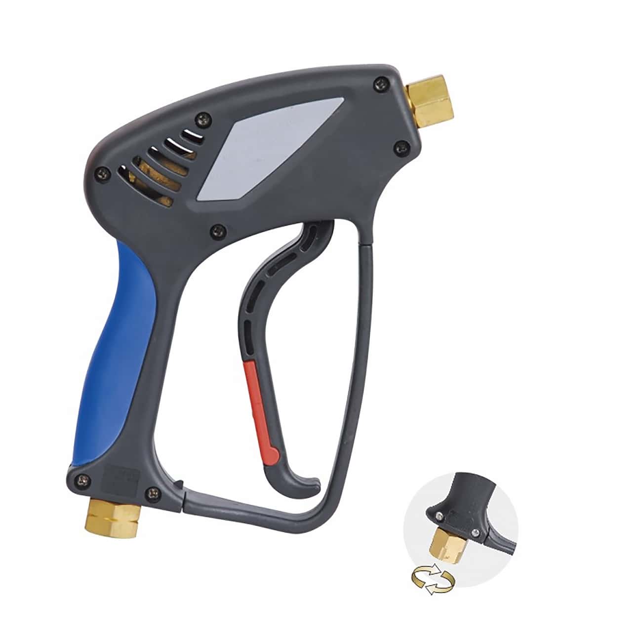 Пистолет (курковая часть) предназначен для работы с аппаратами высокого давления и пенокомплектами. Обеспечивает надёжное управление подачей воды или моющего раствора при мойке автомобилей, оборудования и поверхностей. Подходит для профессионального и полупрофессионального применения.