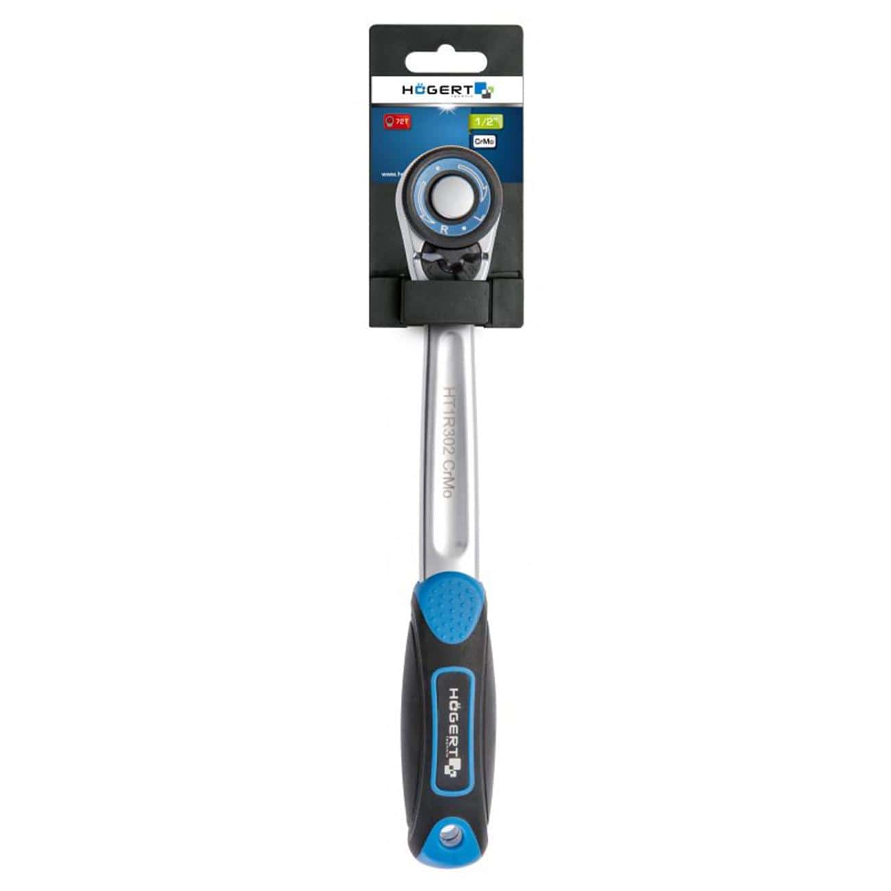 Это прямой ручной трещоточный ключ размером 1/2 (12,5 мм) с механизмом из высококачественной CrMo‑стали, установленной в корпус из CrV‑сплава. Он оснащён системой quick‑release, переключателем направления работы (вперёд/назад) и 72‑зубчатым механизмом, который обеспечивает минимальный угол поворота — всего ≈ 5°, что удобно при работе в ограниченных пространствах. Ёмкость корпуса — пластиково-резиновая (bi‑material), с эргономичным нескользящим покрытием. Гарантия производителя — пожизненная.
