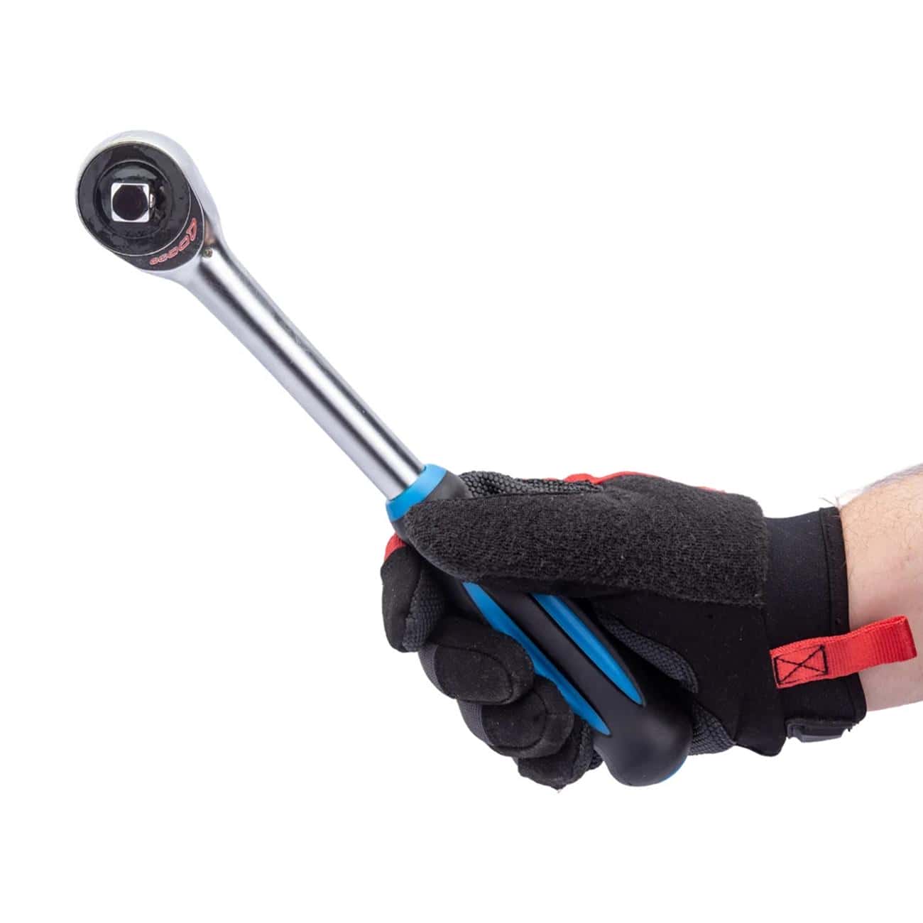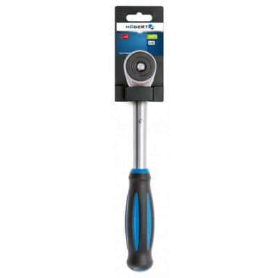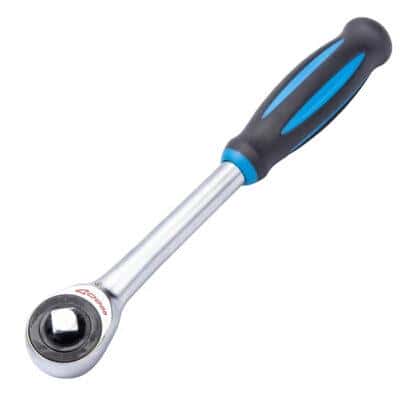 Это профессиональная трещотка 1/2 (12,5 мм) с поворотной ручкой, изготовленная из высококачественной CrV‑стали, а сам механизм — из стойкой к нагрузкам CrMo‑сплава с 60 зубьями. Поворотная конструкция корпуса позволяет работать под углом 90° в труднодоступных местах, а переключатель направления обеспечивает удобство использования. Эргономичная рукоять с противоскользящим покрытием гарантирует надёжный захват.