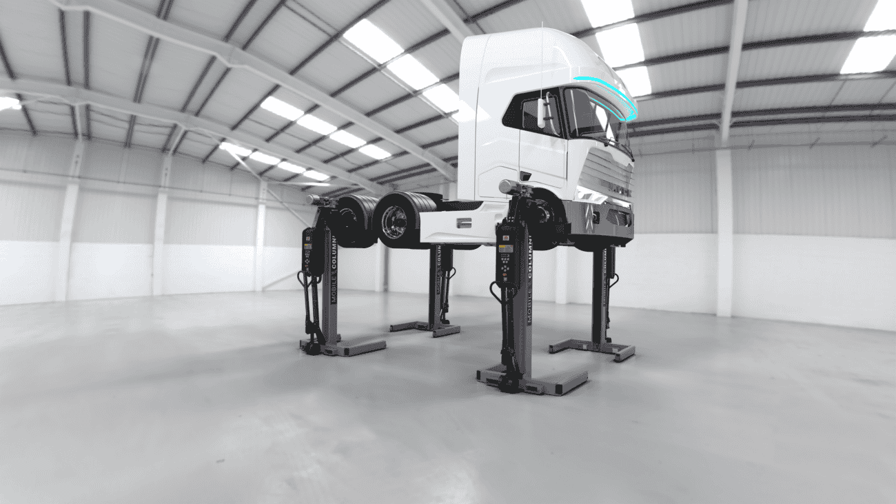 Мобильный колонный подъёмник с электромеханическим приводом, рассчитанный на грузоподъёмность 8500 кг.