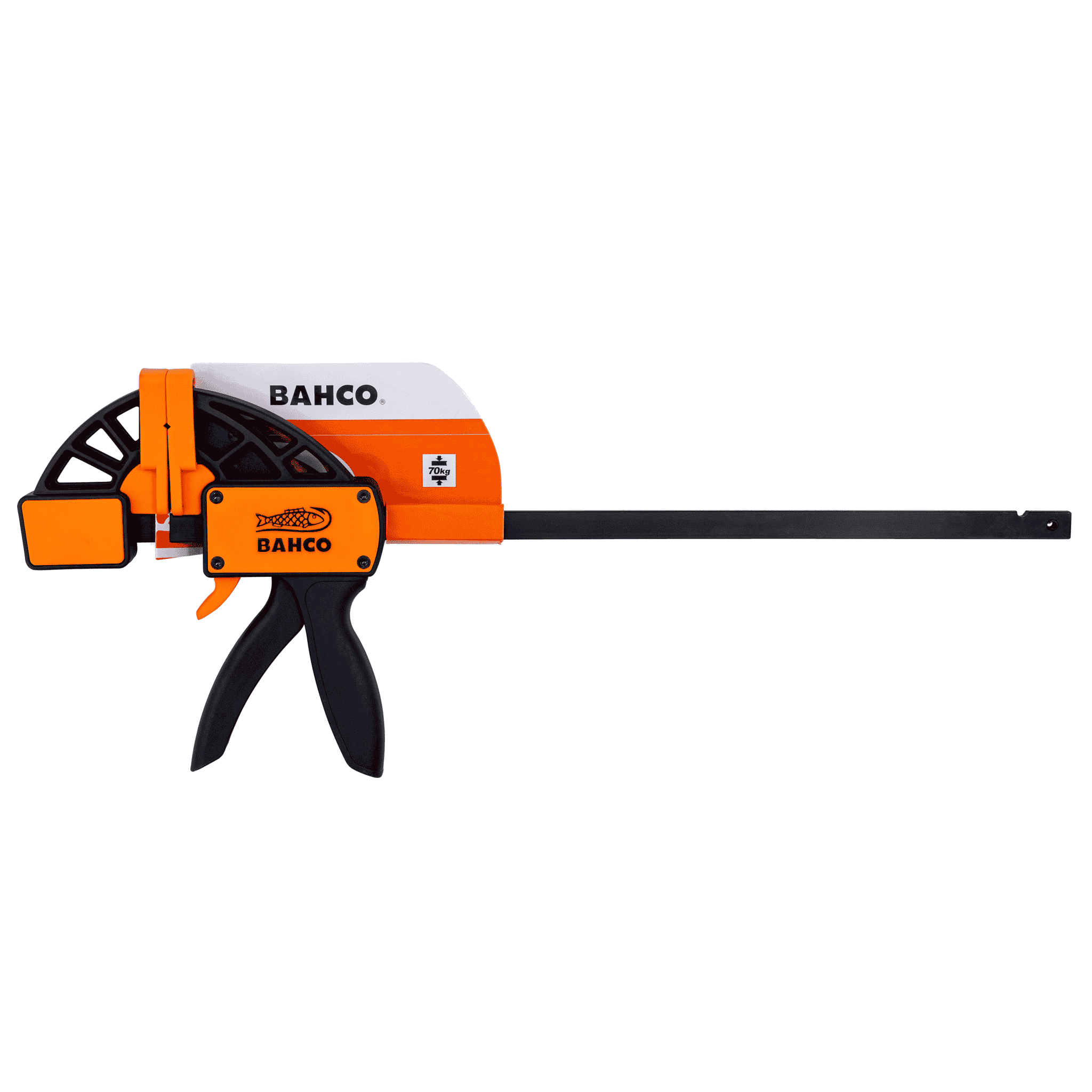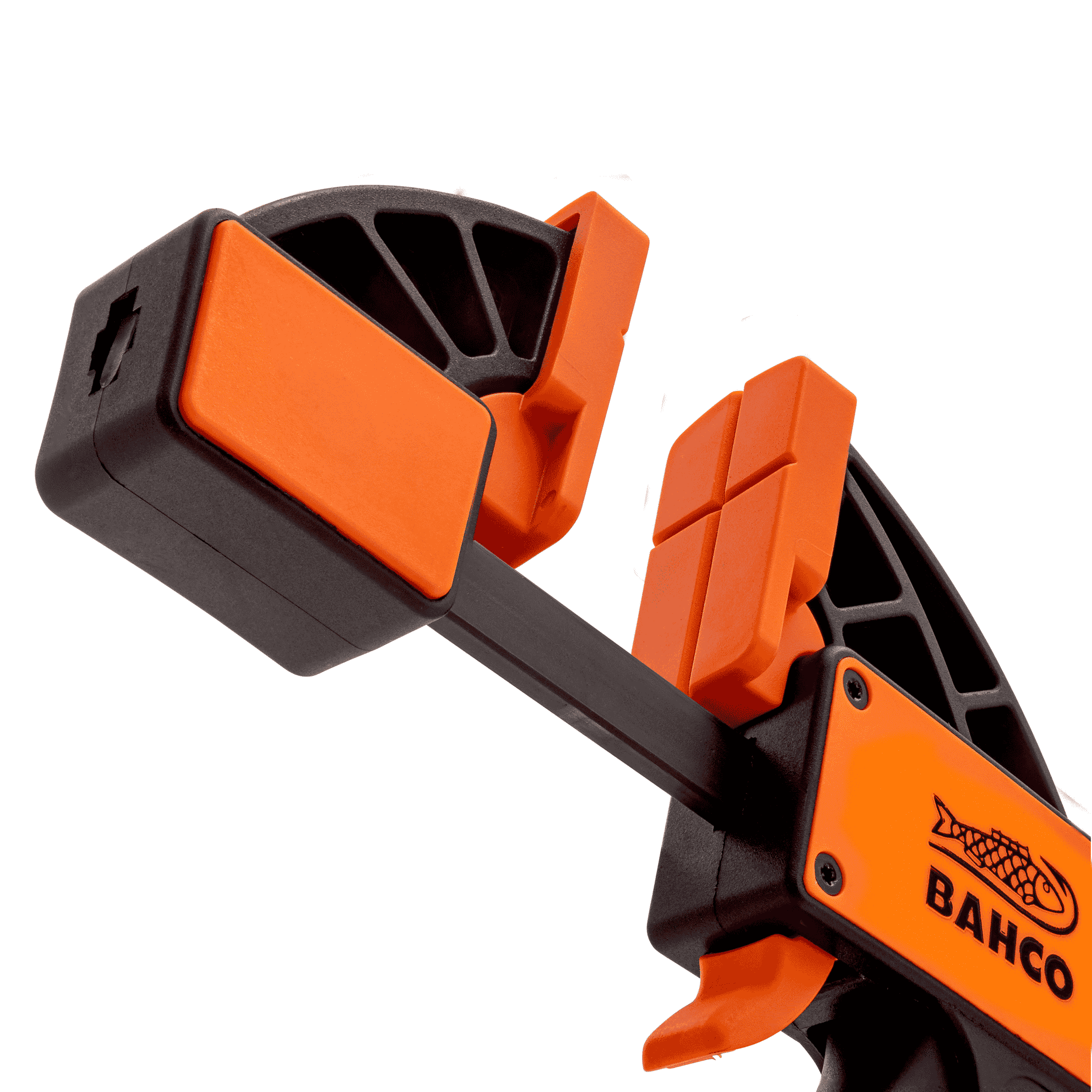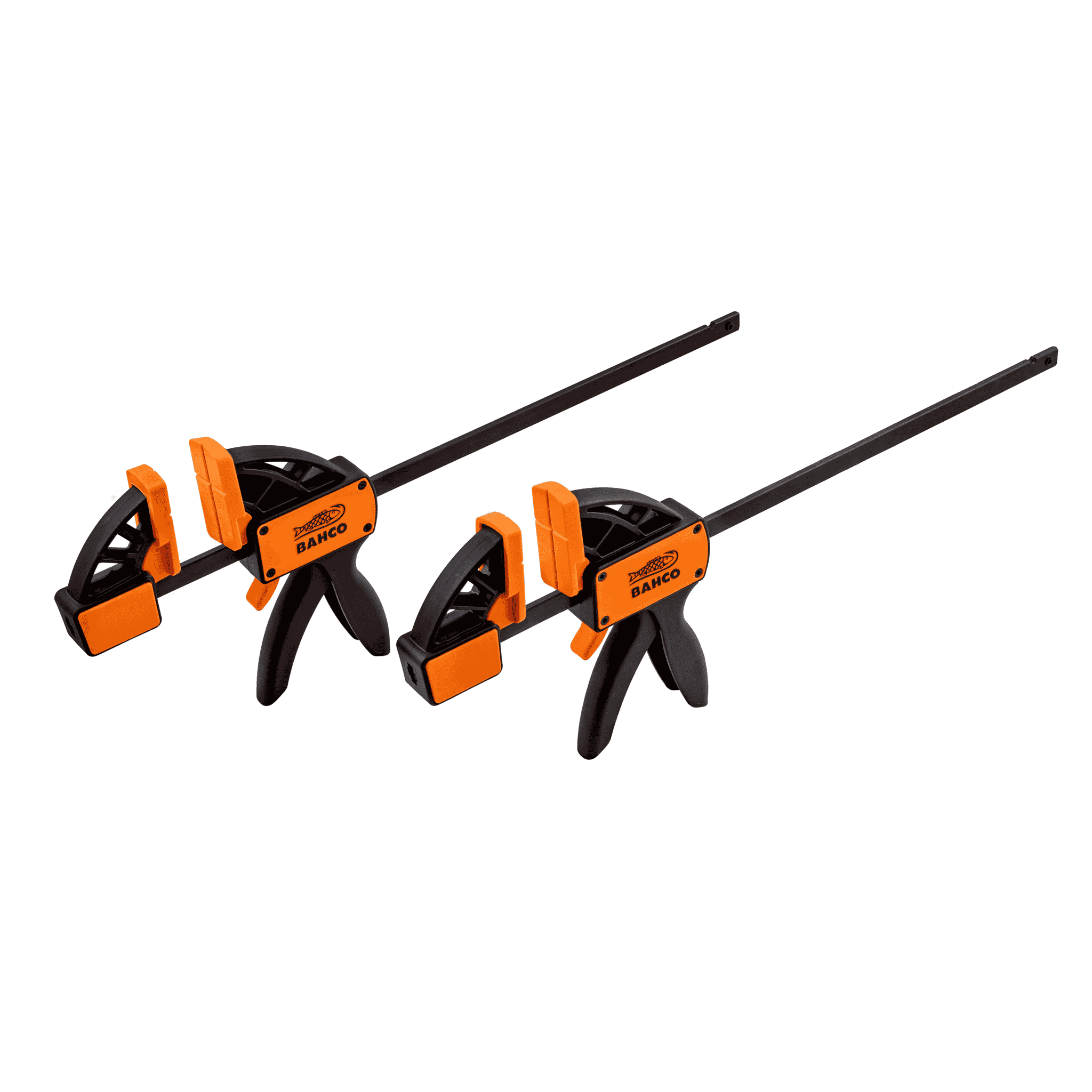Комплект BAHCO QC‑150A‑2P состоит из двух компактных струбцин с шириной захвата до 150 мм и общей длиной 305 мм каждая. Оснащены механизмом Quick‑Release (QR), который позволяет фиксировать и освобождать заготовку одной рукой, значительно повышая скорость и удобство работы. Благодаря прочной конструкции и обратимому механизму головки, струбцины сохраняют максимальное усилие на протяжении минимум часа без подтяжки