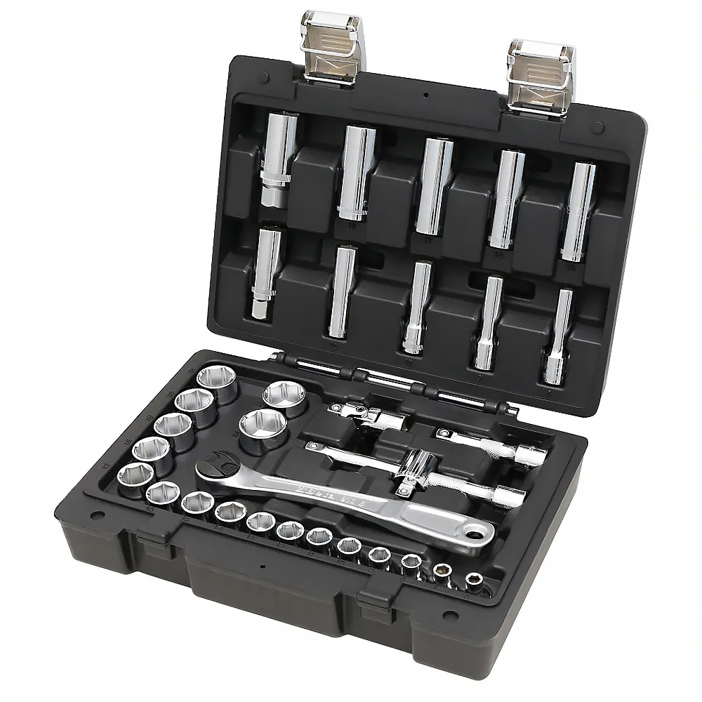 Универсальный профессиональный набор Beta Tools включает 28 метрических шестигранных торцевых головок и 5 базовых аксессуаров, всё аккуратно упаковано в прочный пластиковый кейс. Идеально подходит для сервисных центров, автоработников и домашних мастеров.