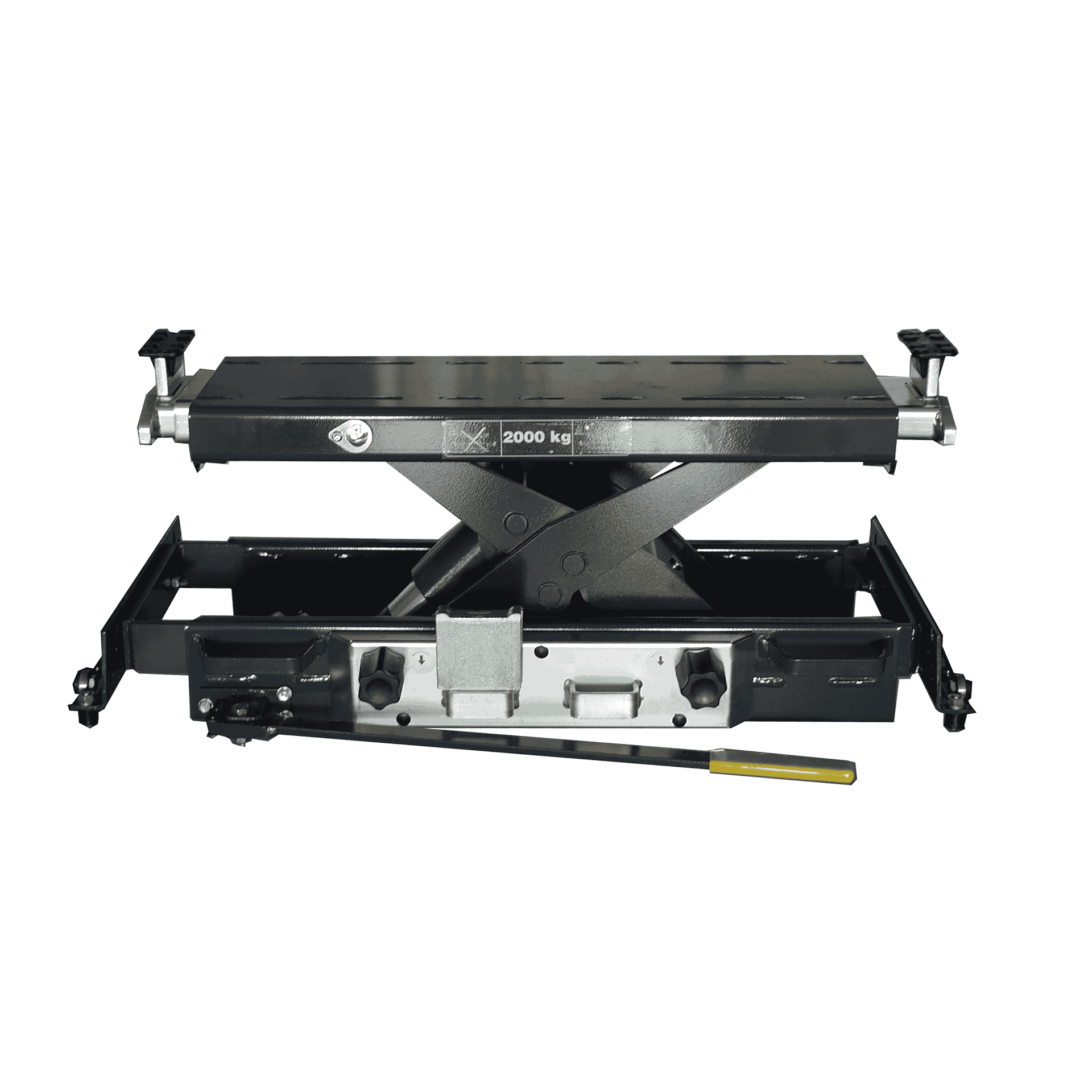AL II 2.0 - прочный и испытанный подъёмник оси, рассчитанный на нагрузку до 2000 кг. Может работать с ручным гидравлическим приводом или гидропневматическим (в зависимости от комплекта). Подходит для автосервисов, станций техосмотра, где требуется поднимать ось транспортного средства для обслуживания, замены колёс, диагностики подвески и тормозов.