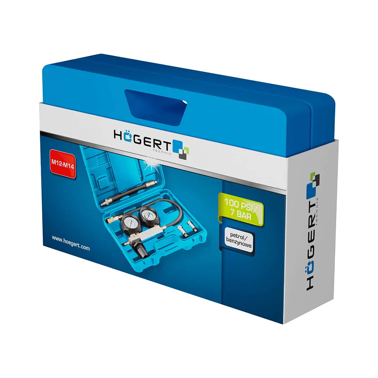 Набор для выявления утечек в цилиндрах HOEGERT предназначен для диагностики герметичности цилиндров бензиновых двигателей. Позволяет выявить такие неисправности, как износ поршневых колец, повреждение клапанов, трещины в головке блока цилиндров или прогоревшие прокладки. Прибор показывает степень утечки и давление в цилиндре, что помогает точно определить техническое состояние двигателя. Оснащён двумя манометрами с легко читаемой шкалой и быстросъёмными соединениями для удобного подключения.