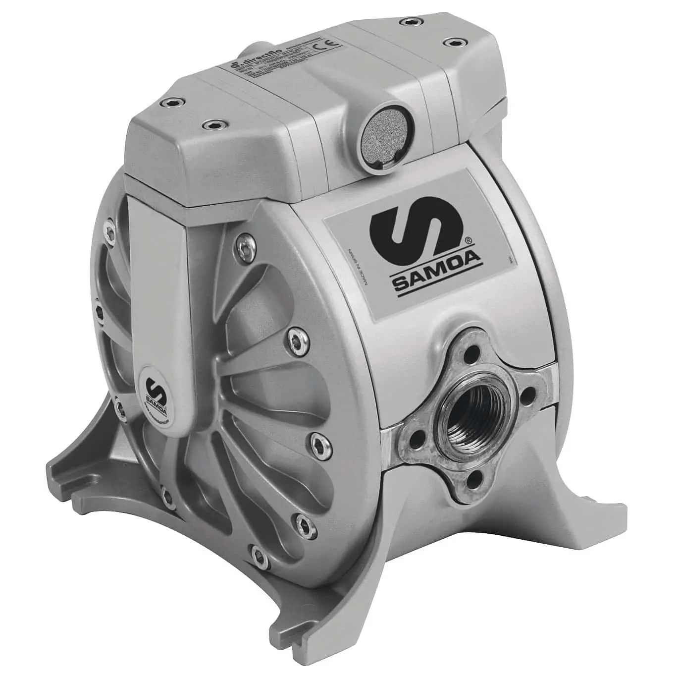 Насос Samoa DF100 — это пневматический двухдиафрагменный насос (air-operated double diaphragm, AODD) серии DirectFlo®, выполненный из металлических материалов (нержавеющая сталь / алюминий) с PTFE-мембранами. Он предназначен для дозирования, перекачки, распределения и эвакуации разнообразных жидкостей — масел, дизельного топлива, смазок, моющих растворов и т.п.