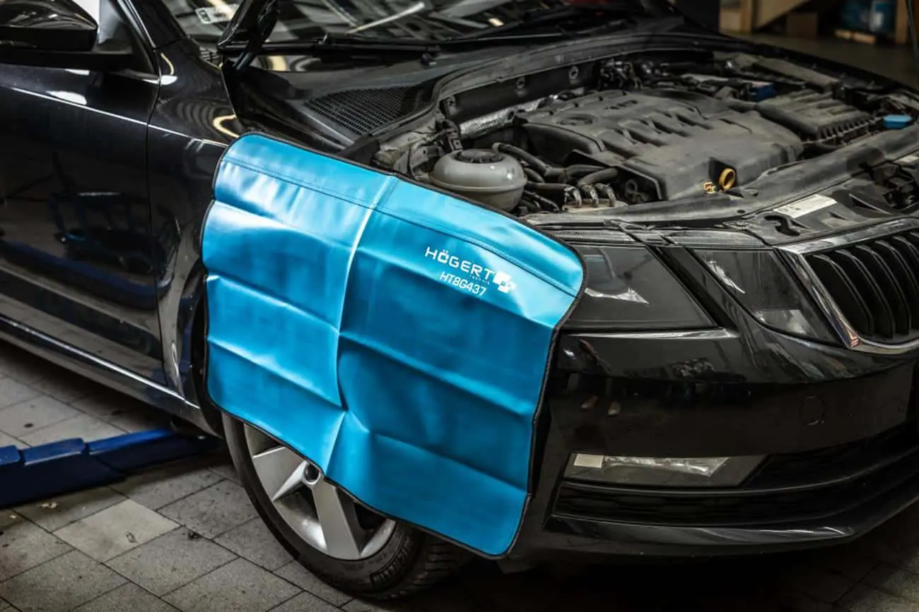 Магнитный коврик, предназначенный для защиты кузова автомобиля (капота, крыла) при выполнении ремонтных и технических работ. Изготовлен из прочного полипропилена, устойчивого к маслам и механическим повреждениям. Магниты внутри коврика обеспечивают надёжное крепление к металлической поверхности без сдвигов. Многоразовое использование и удобство очистки делают его практичным выбором для автосервиса или домашней мастерской.