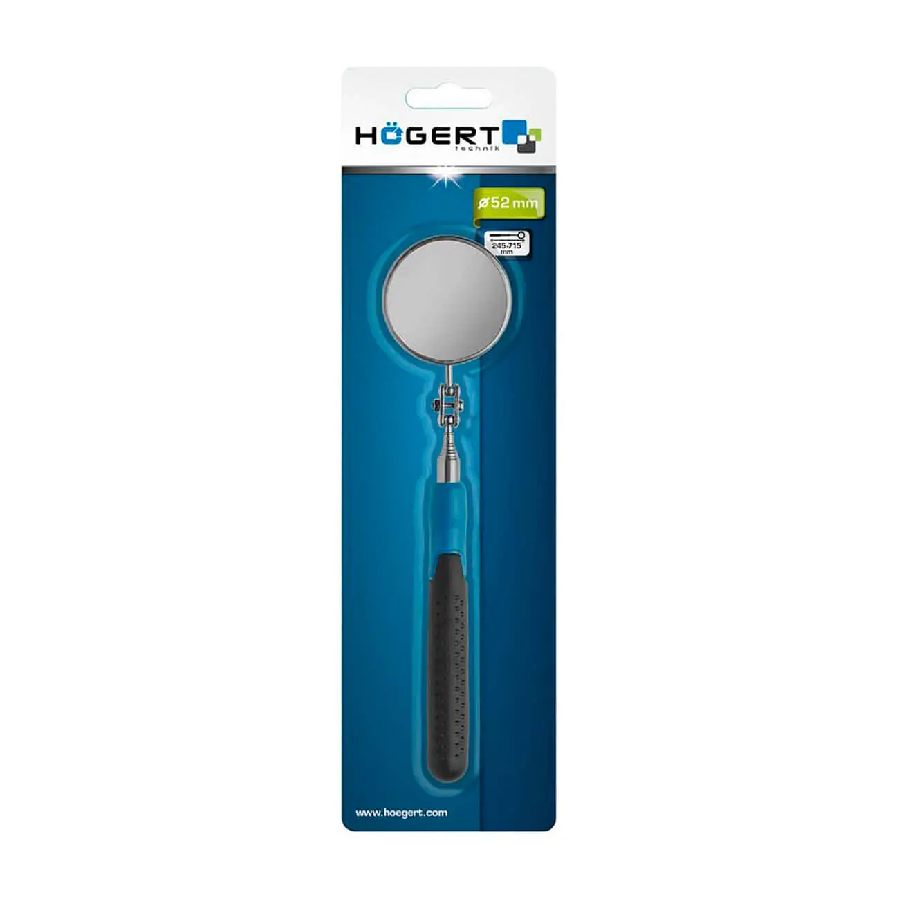 Зеркало телескопическое HOEGERT, круглое, 52 мм предназначено для визуального осмотра труднодоступных мест при ремонте и техническом обслуживании оборудования. Оснащено телескопической рукояткой, позволяющей регулировать длину и обеспечивать удобный доступ к скрытым участкам. Круглое зеркало диаметром 52 мм обеспечивает хороший обзор и помогает быстро обнаружить повреждения, утечки или неисправности. Компактная и прочная конструкция делает инструмент удобным для профессионального использования в мастерских и автосервисах.