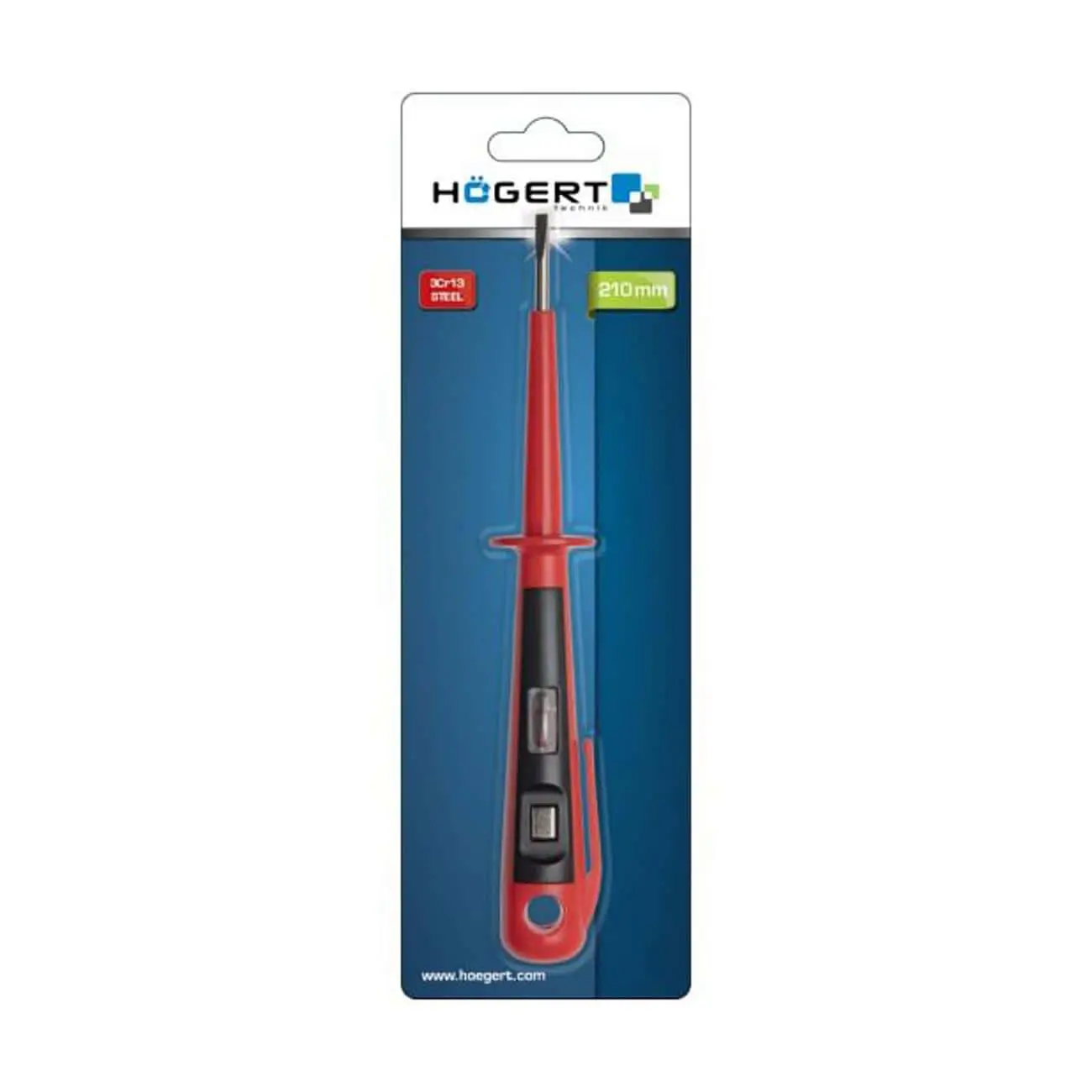 Компактный и безопасный индикатор напряжения для электриков, выполненный в формате плоской отвертки длиной 150 мм. Позволяет определять наличие напряжения в диапазоне 100–500 В (AC) при работе с проводкой и розетками без прямого контакта.