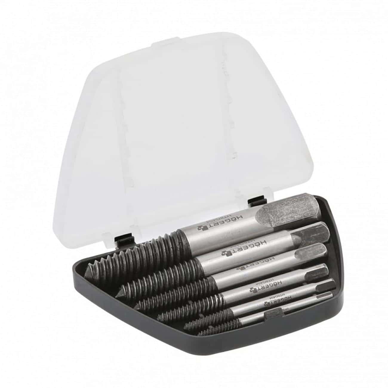 Это практичный комплект из 6 экстракторов, предназначенных для удаления повреждённых, сорванных, закрученных или обломанных винтов и болтов. Инструмент эффективно работает на резьбе от M3 до M25, обеспечивая универсальное решение в трудных ситуациях при снятии крепежа. Поставляется в компактной пластиковой кассете, вес набора всего около 230–244 г