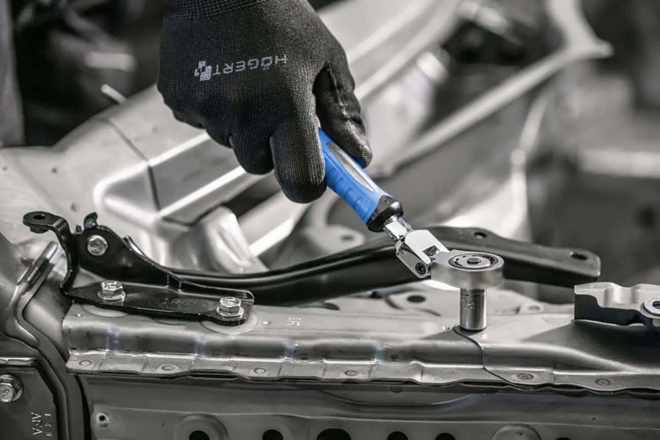 • Шарнирная головка — позволяет наклонять ключ для работы в труднодоступных местах.