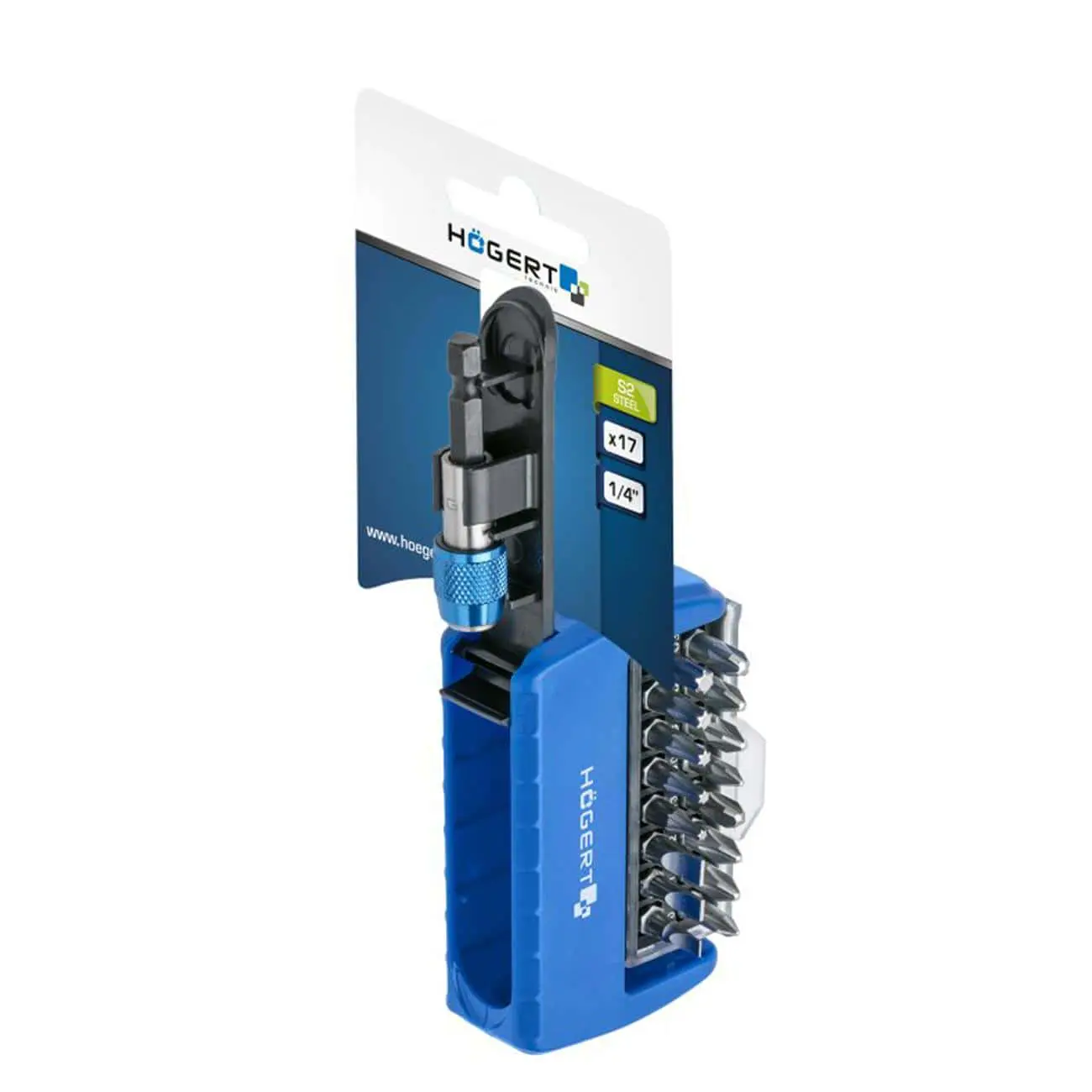Компактный и эргономичный набор из 17 отверточных битов с магнитным держателем ¼″ (HEX), предназначенный для использования как вручную, так и с аккумуляторными инструментами. Отличный выбор для ремонтных, монтажных и сервисных задач.