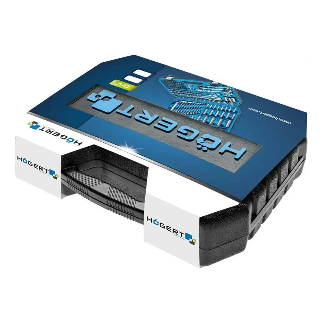 Профессиональный комплект включает 131 высококлассный инструмент: торцевые головки, удлинённые головки, биты, трещотки, комбинированные ключи, измерительные и вспомогательные инструменты, а также аксессуары для приводов 1/4″, 3/8″ и 1/2″. Изготовлен из хром‑ванадиевой стали (Cr‑V), элементы трещоток выполнены из хром‑молибденовой стали (Cr‑Mo) с 72 зубьями для максимальной долговечности и точности