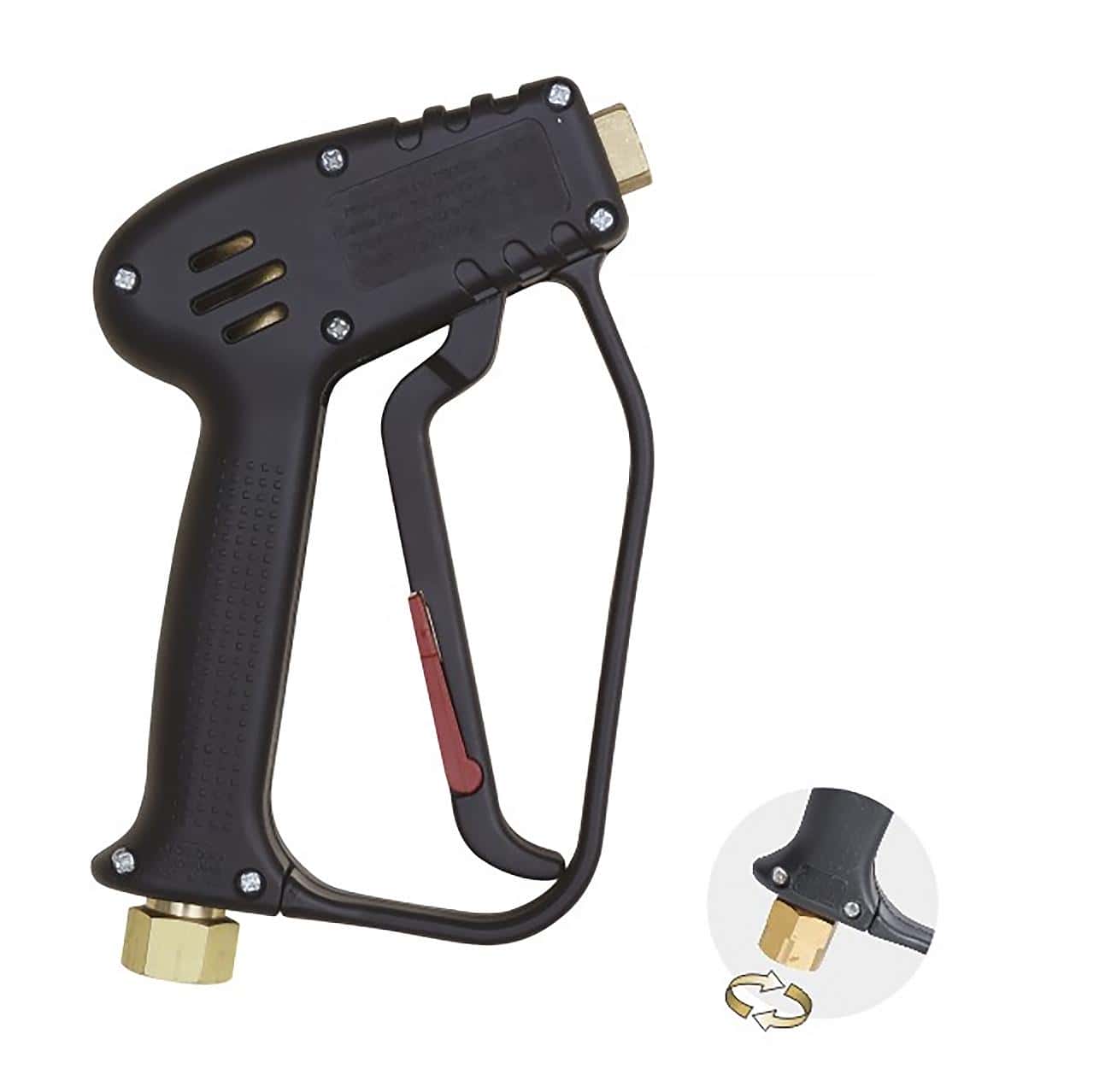 • Вращающаяся входная гайка — снижает перекручивание шланга