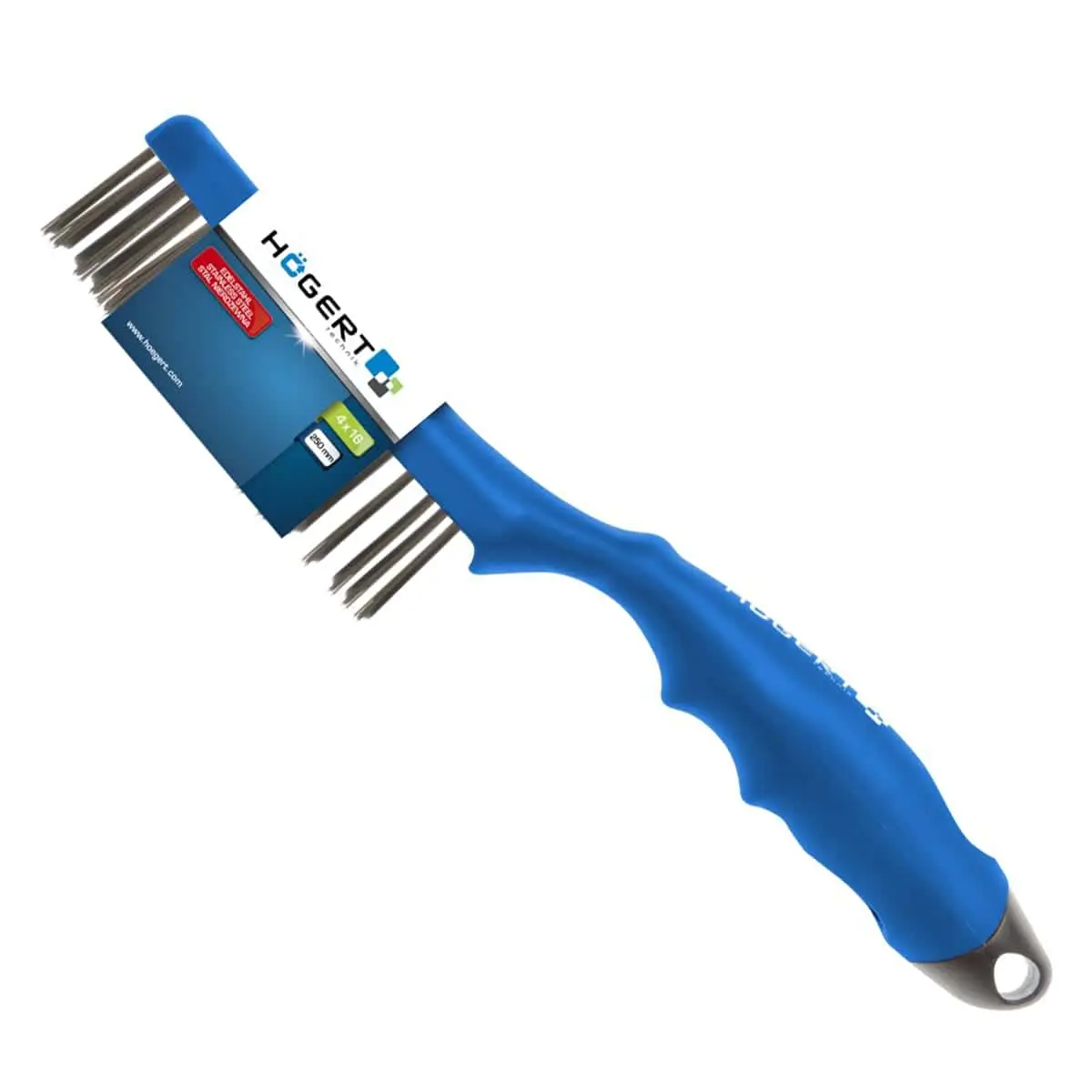 Это качественная ручная щётка с 4‑рядной проволокой из нержавеющей стали, предназначенная для подготовительных и очистных работ. Компактный и прочный инструмент создаёт ровную, чистую поверхность и удобен в работе.