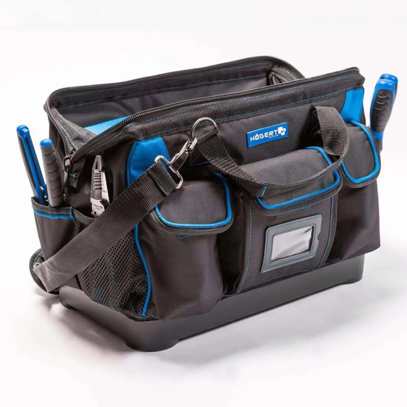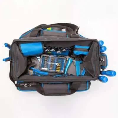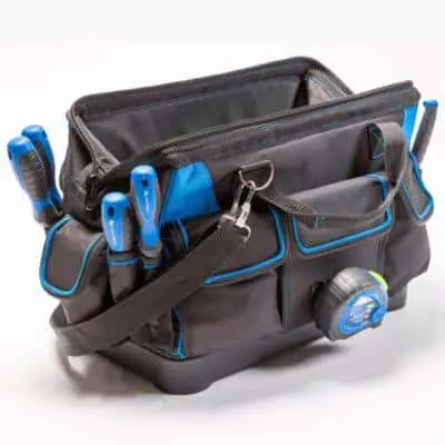 Сумка – сочетание прочности и функционального дизайна. Прочная и продуманная по деталям сумка для инструментов. Сочетает лёгкость, вместимость и удобство хранения для профессиональной и домашней работы. Отличный выбор для тех, кто ценит организацию, надёжность и качество в одном аксессуаре. Изготовлена из высококачественного полиэстера 600D, дополнена усиленным пластиковым дном, обеспечивающим устойчивость и долговечность. При весе около 1,55 кг, размеры — 41 × 23,5 × 31 см.