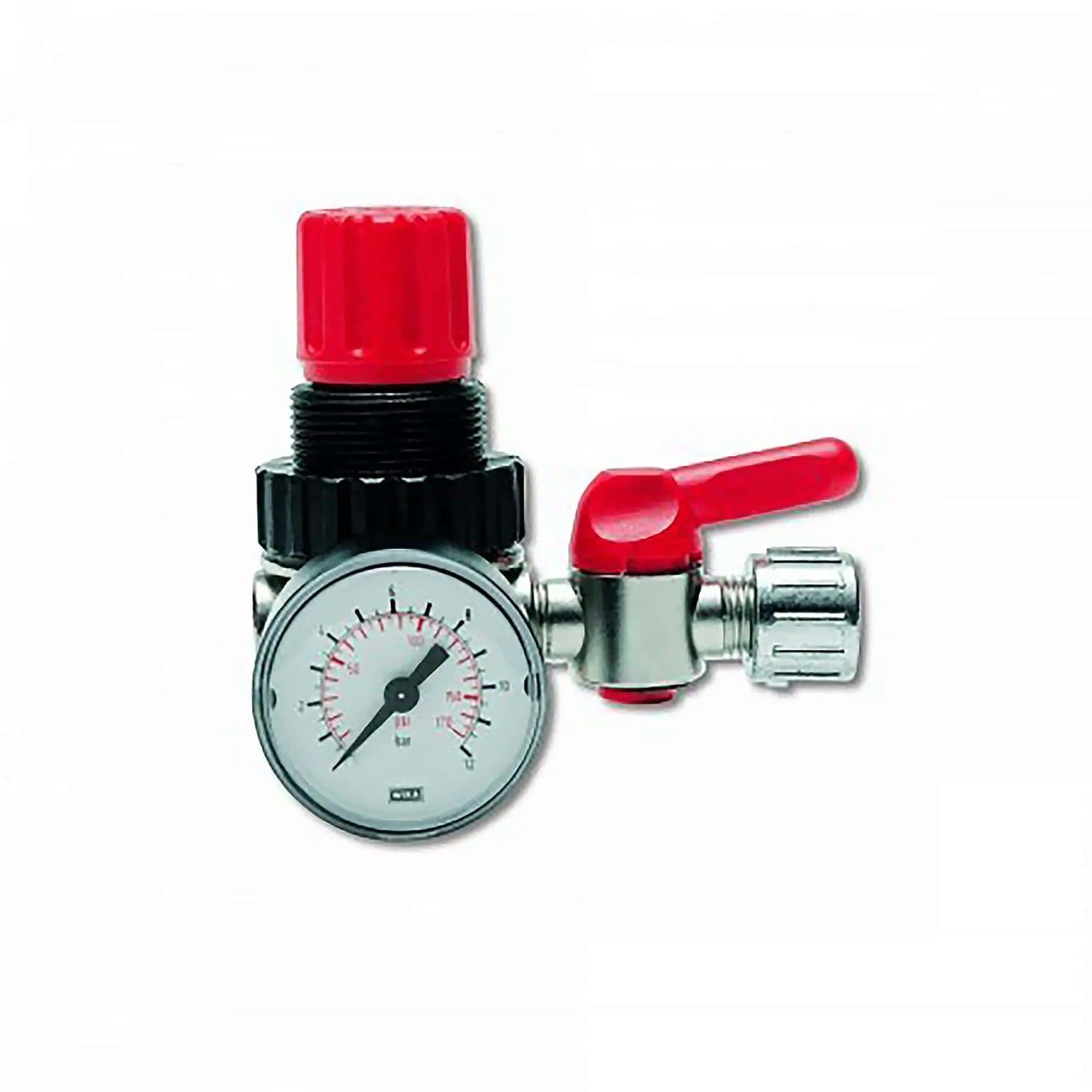 Регулятор давления воздуха GAV RP182 (1/4″) — устройство, предназначенное для точного контроля и стабилизации давления в пневмосистемах. Оснащён встроенным манометром Ø 40 мм для визуального контроля давления. Диапазон регулируемого давления составляет 0–10 бар, при этом максимальное давление на входе не должно превышать 12 бар. Пропускная способность составляет примерно 700 л/мин.