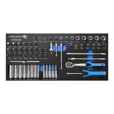• Торцовые ключи, плоские ключи, биты, головки, отвертки, плоскогубцы, молоток, наборы роботов и др.