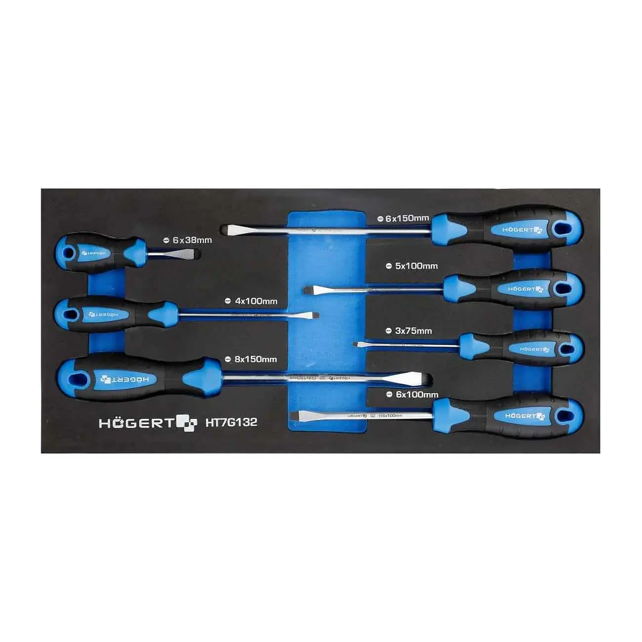 • 7 выдвижных ящиков: шесть высотой 75 мм, один глубже — 154 мм, для крупного инструмента.