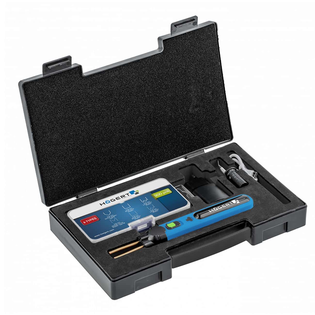 • Упаковка в пластиковом кейсе — удобно сохранять и хранить инструмент и расходники.