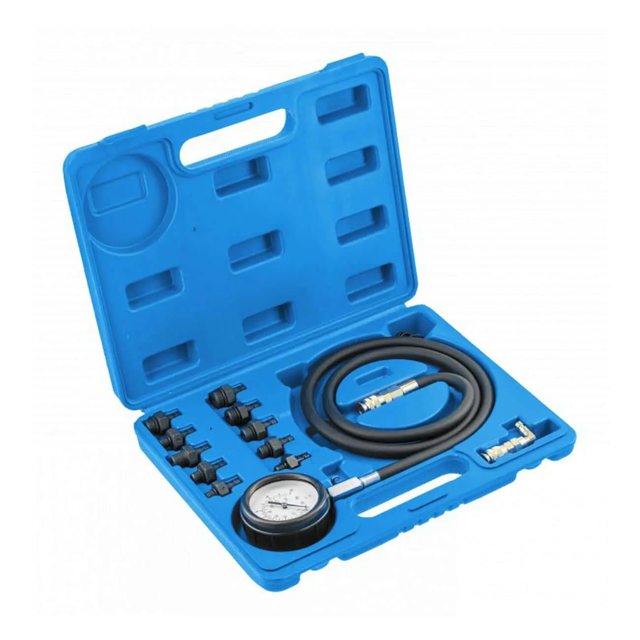 Это аналоговый манометр давления масла, предназначенный для проверки давления масла в цилиндрах бензиновых и дизельных двигателей. Простая и надёжная конструкция позволяет быстро и точно замерять параметры масла. Корпус манометра изготовлен из ударопрочных, но лёгких материалов, с защитным резиновым демпфером — стекло устройства защищено от механических повреждений. Все элементы комплектуются быстроразъёмными соединениями, что упрощает установку прибора в любых условиях.