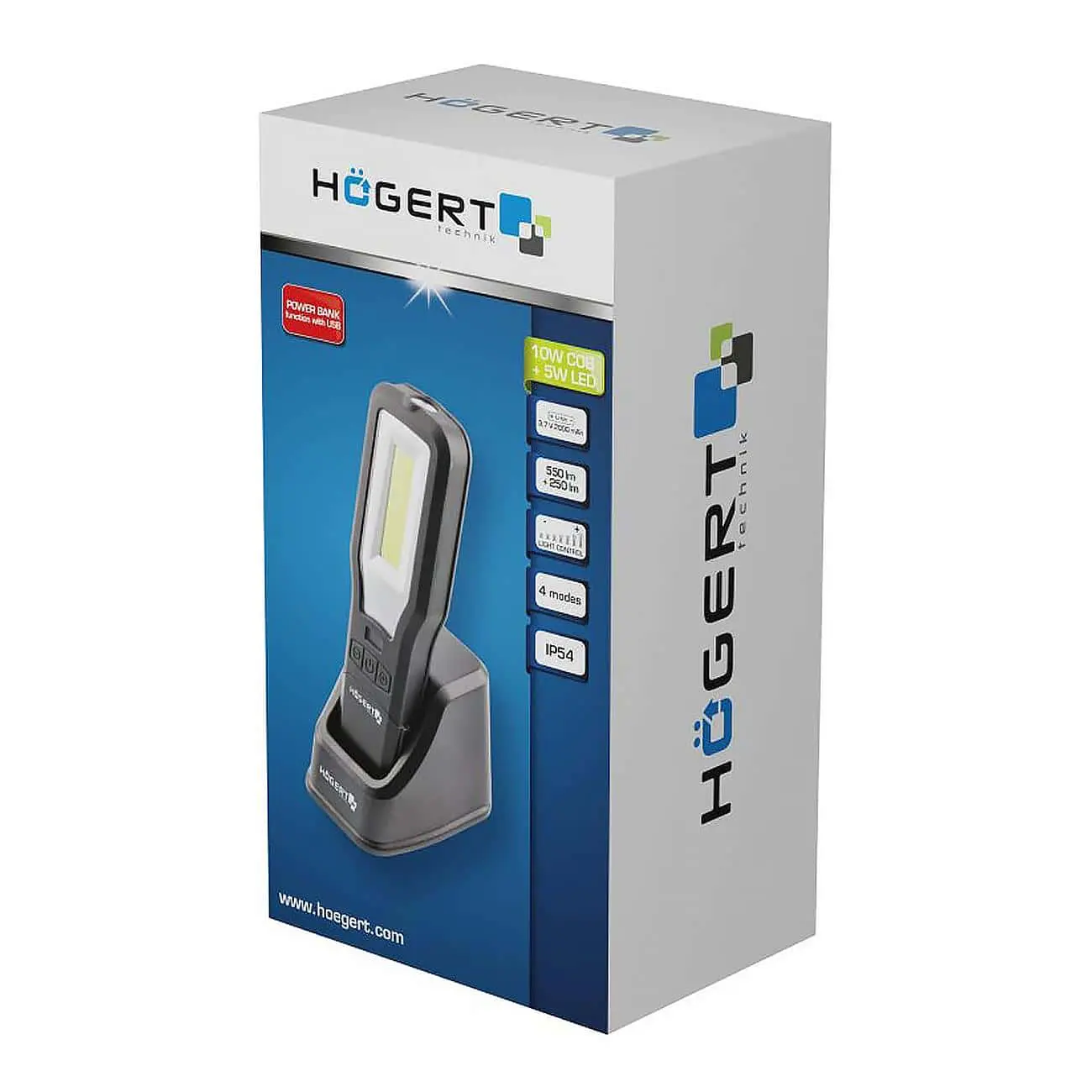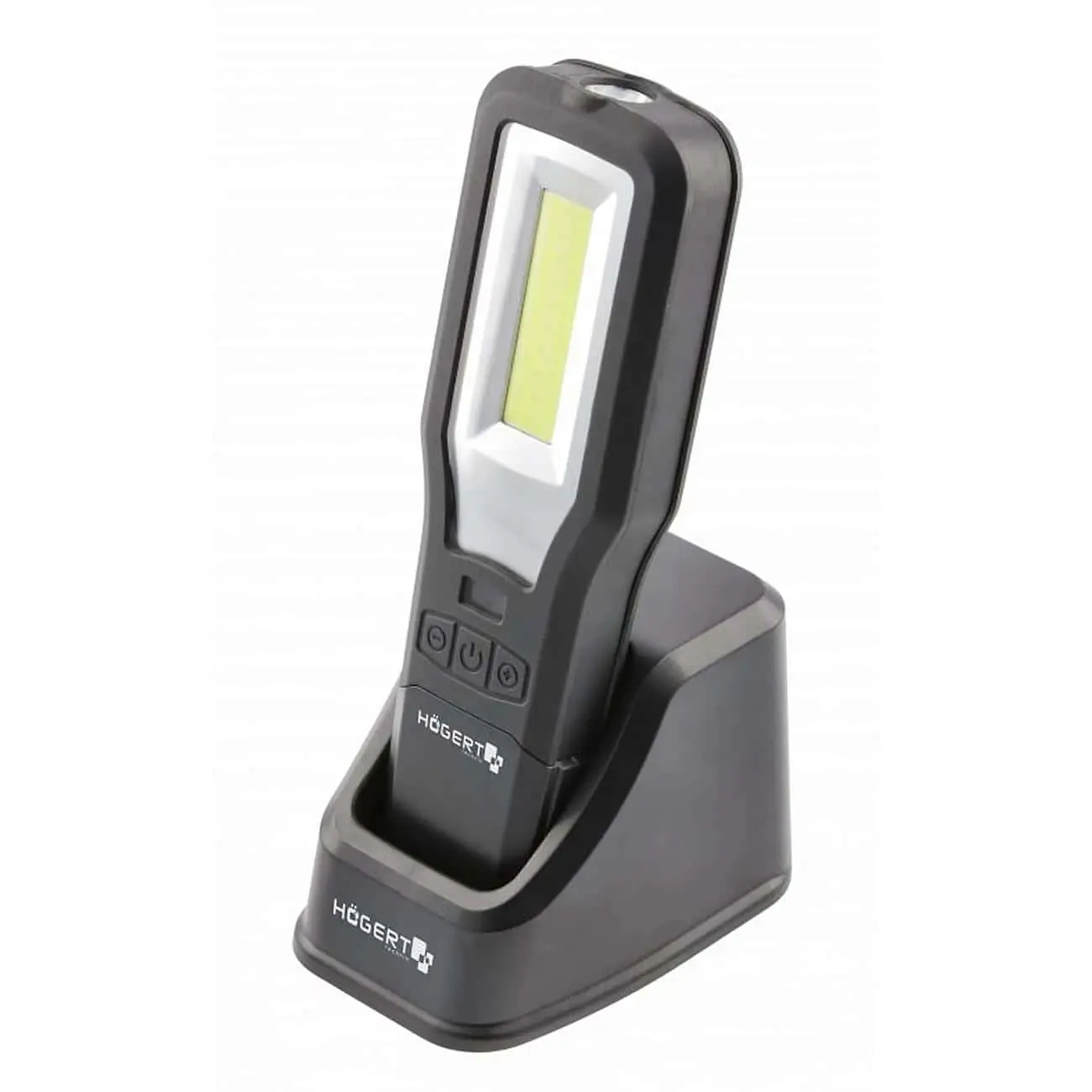 Универсальная LED‑лампа, предназначенная для освещения рабочего места в мастерской, автомобиле или доме. Оснащена основным COB LED‑светильником мощностью 10 Вт (550 лм) и дополнительным верхним светодиодом 5 Вт (250 лм). Удобный USB‑док позволяет не только зарядить лампу, но и использовать её как внешний аккумулятор (Power Bank). Корпус из противоскользящего ABS, защита IP54 позволяет эксплуатировать лампу в сложных условиях.