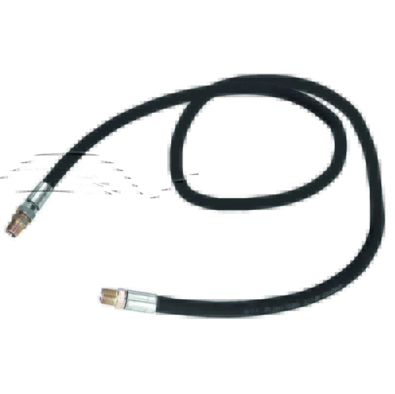 Это высококачественный шланг, предназначенный для использования с насосами и пистолетами для подачи консистентной смазки. Шланг изготовлен из нитрильной резины (NBR) с армированием стальной оплёткой, что обеспечивает его долговечность и устойчивость к химическим веществам. Он оснащен фитингами с поворотной гайкой и адаптером на одном конце, что обеспечивает удобство подключения и использования.