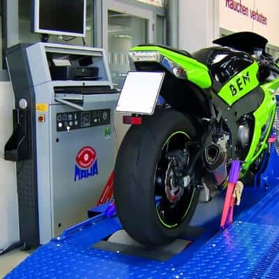MAHA MSR 400 — однороликовый динамометр (роликовый мощностной стенд), предназначенный для измерения мощности, крутящего момента и динамических характеристик мотоциклов. Стенд работает по принципу инерционного ролика и позволяет проводить статические и динамические измерения мощности с регулируемой скоростью и ускорением. При испытаниях обеспечивается реалистичное поведение шины на ролике, что повышает точность измерений. Комплекс включает пульт управления и программное обеспечение с графическим отображением параметров.